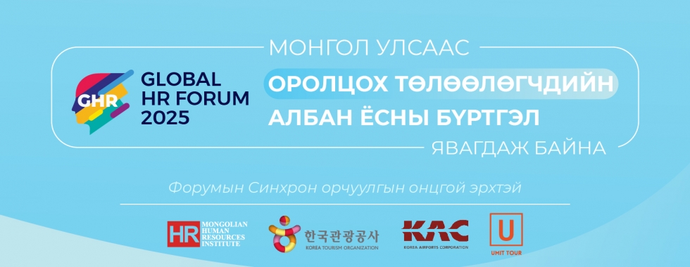 GHRF 2025 | KOREA - 2025.11.04 БНСУ зохион байгуулагдах Глобал HR Форумтай холбоо бүх мэдээллийг эндээс ... (МУ-с оролцох төлөөлөгчдийн албан ёсны бүртгэл явагдаж байна.)